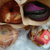 11/3(日) この日のお昼ご飯はこんな感じ↓ www.atnk0806.site そして、ついでに寄り道。 おやつに金沢市諸江町にあるベーグルのお店とべーぐるで、ふわもちプレーン、バタープレッツェル、金澤五郎島スイートポテトの各ベーグルと、この日の限定らしい禁断の林檎フレンチトーストを選択。 フレンチトーストの間にリンゴがゴ…