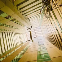 都庁のすぐ隣のビルの1階に迷い込んで、ここはどこだろうと辺りを見回していた時に、ふと上を見たら・・・。 あおッ! 一人で歩いていたのですが、思わず変な声が出ました。人間ホントに無意識に出る声って全く自分でも出そうと思ってなくて、かつ言葉にならない音みたいな声が出るんですね。 最上階まで吹き抜けです。 空…