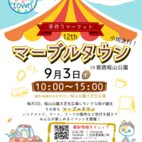 毎月3日に太市の桜山公園大芝生広場にて開催世代を超え、地域も超え、性別も超え、いろんな人たちが混ざり合って「色」を発揮する、マーブルタウン!姫路を中心に活躍するハンドメイド作家、クリエイター・アーティストたちによる様々な手作りの作品・フード・地元のこだわり新鮮野菜の直売「おしゃれでかわいい・おいしい