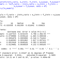 www.crosshyou.info 今回は女性議員の比率を他の変数で回帰分析してみます。R言語のlm関数を使います。 f_jimin: 自民党の女性議員の数、f_kyosan: 共産党の女性議員の数が有意な変数です。 自民党の女性議員の数が1人増えると、女性議員の比率は、0.0146、つまり1.5%ほど上昇します。共産党の女性議員の数が1人増えると、…