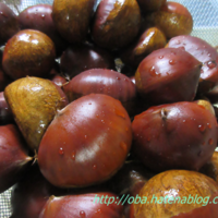 今日の一枚の写真は、秋の味覚「栗」です。 ツヤツヤのピカピカですが、外側のイガイガを剥いてここまでにするのが面倒なのですよね。 義姉のお宅から採りたてをたくさんいただいたので、冷蔵庫のチルド室で10日ほど保冷してありました。 なんでも、栗は、収穫してすぐ茹でるよりも、チルド室でしばらく休ませておいてから…