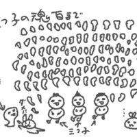 三つ子の魂百までと言います。 こちらの絵をごらんください。三つ子の魂は百までなので、それ以上は許されません。101つめの魂が三つ子の魂になろうとしてもダメなのです。三つ子の魂百までなのです。 そうすると、二人が33つの魂を、一人は34つの魂を手にすることになります。ひとつの魂を3分の1ずつ分けて、最後まできっ…