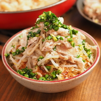 もやし2袋、豚バラ200g「ガリバタ炊き込みご飯 ニラだれがけ」フライパンで炊けば臭い残りの心配なし【筋肉料理人】