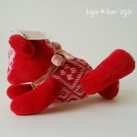 こぎん刺しの模様を生地全面に刺した「総刺し」を取り入れた 「総刺しこぎんクマ」です。 生地はミニチュアファーという、短い起毛したテディベア用の生地を使っています。 今回のは横たわっているポーズ。 でも、普通の座るタイプと同じ型紙で作られています。 サイズ 高さ5cm×横9c…
