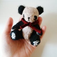 やさしいおじいちゃんみたいなとぼけた表情。 白の部分をあえてベージュにして、ワインレッドのリボンを結んだら、 なんだか巨匠のような貫禄のある雰囲気に! 美術の教授“パンダ先生”。お気に入りの美術館はやっぱり上野? 小さいから、バッグに入れて一緒に美術館めぐりも。 最近の美術…