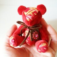 こぎん刺しのテディベアS 総刺しこぎんクマ ルビー