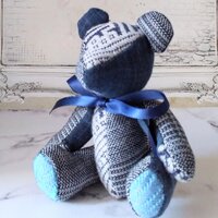 こぎん刺しのテディベアM 総刺しこぎんクマ BLUE CASUAL