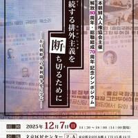 在日本朝鮮人人権協会(金舜植会長)が12月7日(日)に企画した、祖国解放80周年・総聯結成70周年記念シンポジウム「継続する排外主義を断ち切るために:在日朝鮮人の権利闘争史に学ぶ」のお知らせです。 …