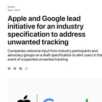 AppleとGoogleは、「AirTag」などの紛失防止端末の悪用に対処するための業界仕様案を共同で提出した。iOSとAndroidで共通の不正端末の検出と警告を表示する目的。年内に仕様の製品実装をリリースする計画としている。