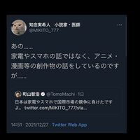 赤木智弘「日本の漫画アニメはガラパゴスへ!」知念実希人「それで良い」町山智浩「家電スマホで国際競争に負けた!」⇒漫画アニメの話なんだが…