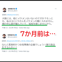 村井あけみ「大阪にイケメンはいないの?ヨ○○ラは顔の中心部が緩んで知性を感じない」過去⇒「顔で政治するんかい!」