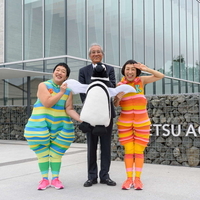 ケロポンズがペンギン・ダンス制作 村山市長が激励 新水族博物館「うみがたり」PR