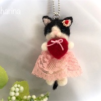 ハチワレ黒白ねこちゃんのキーホルダー・羊毛フェルト