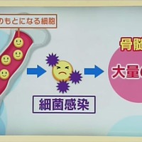 【NHK】骨の中には骨髄というやわらかい組織がある。そこに細菌が感染すると、痛みや発熱を伴う骨髄炎になる。皮膚を突き破るほどの大量の膿(うみ)ができる。子どもに多く、かぜやけがの後に起こることが特徴。最近では中高年に多く、背骨の骨髄に炎症が起こる「化膿(のう)性脊椎炎」も増えている。糖尿病や慢性腎臓病など…