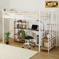 [高さ2段階式階段付きロフトベッド(WH)]通販