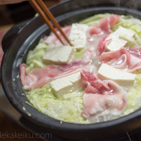キャベツ、豚肉、豆腐、生姜、ニンニク、酒だけの簡単シンプルなイギリス鍋。 キャベツがおどろくほど美味しく、たくさん食べられ、温まります。