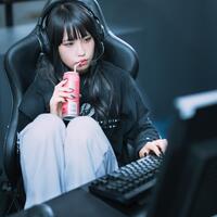 エナドリを飲みながらゲーミングチェアで休憩中のゲーマー女子 - ぱくたそ