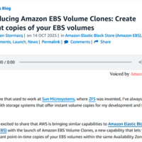 AWS、Amazon EBSボリュームを数秒でコピーできる「Amazon EBS Volume Clones」リリース