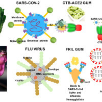 Debulking different Corona (SARS-CoV-2 delta, omicron, OC43) and Influenza (H1N1, H3N2) virus strains by plant viral trap proteins in chewing gums to decrease infection and transmission