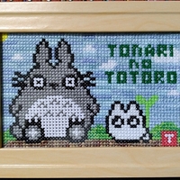 こんにちは、「たこやき。」です。 ジブリ作品「となりのトトロ」より、大トトロ、小トトロです。 2つ目のクロスステッチの作品です。これもかなり前の作品になります。 図案はネットから複数の図案を参考に、材料は布、針、額は「DAISO」、糸は「DMC」だったと思います。 前回の反省からちょっとだけ勉強して、今回は3本…
