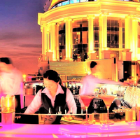 タイ・バンコク、シーロム地区の5つ星高級ホテル「Lebua」 (ルブア)。このホテルのルーフトップバーがシロッコ(SIROCCO)、スカイバー(SKY BAR)。高級ホテルに設けられたルーフトップバーで世界で最も高い場所にあるスカイバーです。映画「ハングオーバー」のロケに使われ、海外に知られる観光スポットに。値段は高…