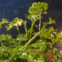 勤務先であるHCの園芸売り場は、ただいま秋野菜の苗で満杯です。白菜、ブロッコリー、キャベツにカリフラワー…とにかくすごい量です。天気が悪く、気温も低いので売上げはどうかしらね。 パラマウントパセリを2株買ってきました。買い取ってきた、と言う方が正しいでしょうか。 よく見ると、このパセリの中に住んでいる…