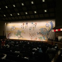 第一部の『かみなり太鼓』だけ引き幕が定式幕でなく、特製のものだった。踊っているのは妖怪さん? ■ まず最初は『日高川入相花王』。 上演前に、定式幕(このときは橙・黒・緑の普通の幕)の前で、小住さんによる解説がついていた。「道成寺は、ここから歩いたら1日がかりですね〜。電車だと2時間くらいですね〜」と歩く…