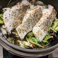 真鯛で「アクアパッツァ」を作ってみた。バーミキュラは便利。豊杯に合わせた。