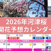 河津桜の開花予想2026と開花カレンダーを毎日更新中!今年は"早咲き"でも開花のバラツキにご注意